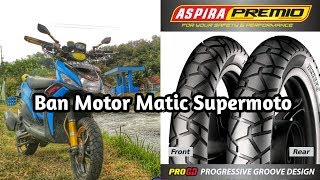 Ban motor matic merk Aspira Premio Terreno Depan ukuran 90/90-14 Belakang ukuran 100/90-14 Nyaman dipakai buat harian,jarak jauh, Medan on/offroad ...